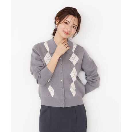 トレンドのアーガイル柄を取り入れた襟付きニットです。かしこまりすぎないよう、ラメ糸を使ってラインを入れたデザイン。詰まりすぎない襟なのでオトナ可愛く着こなせます。