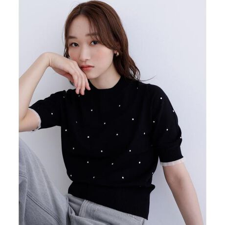 身頃にドット刺しゅうをあしらったハーフスリーブニット。コンパクトなサイズ感なのでボトムスとバランスが取りやすいデザインです。袖口はさり気ない華奢なフリルをプラス。ハイゲージのキレイなニットなので、デイリーもオフィスカジュアルシーンにも着ていただけます。<素材>柔らかいハイゲージのニットにドット刺しゅうを入れています。<詳細>仕様・開閉なし裏地・なし透け感・なし / 光沢・なし / 伸縮性・あり生地の厚さ・普通※モデルの着用画像の場合、光の当たり具合により、実際の色味と異なって見えることがございます。色味は、商品単体の画像をご参照ください。