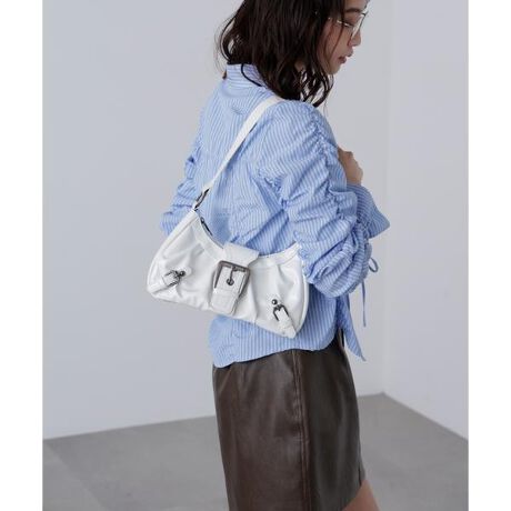 [型番:1315291052]存在感のあるセンターバックルがポイントのショルダーバッグ。すっきりしたカーブフォルムが幅広いコーディネートに合わせやすいデザインです。見た目以上に収納力があり、普段使いからちょっとしたお出かけスタイルまで幅広く活躍します。※モデルの着用画像の場合、光の当たり具合により、実際の色味と異なって見えることがございます。色味は、商品単体の画像をご参照ください。