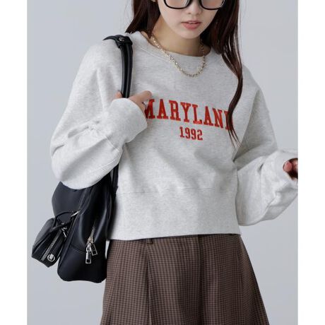 昨年好評だったアイテムが、ロゴ刺しゅうを変えて今年も登場!コットン素材のレギュラーウエイトの短丈スウェットです。フロントはカレッジロゴ刺しゅうで立体感をプラスし、太めの袖には切り替えラインを施しワンポイントをプラス。衿ぐり・アームホール・袖口・裾周りには、またぎステッチを入れ、縫い代の浮きがなく着心地の良いディテールに。スカートでもパンツでも合わせやすい程よい短丈です。バルーンスカート(店舗商品番号131-4220017)を合わせ、トレンドのシルエットで着こなすのがおすすめ。※ロゴの意味「MARYLAND」アメリカのメリーランド州※モデルの着用画像の場合、光の当たり具合により、実際の色味と異なって見えることがございます。色味は、商品単体の画像をご参照ください。