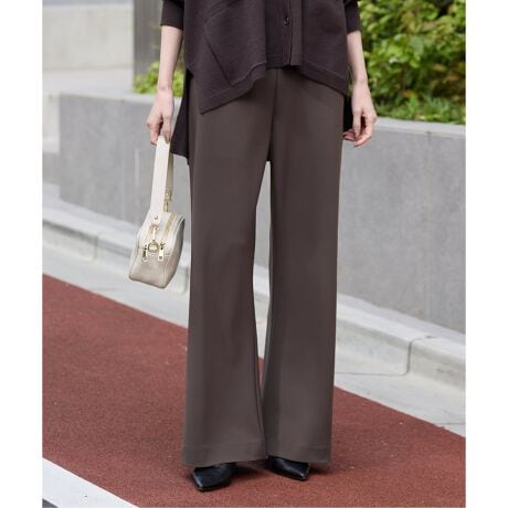 素材感: しなやかで落ち感のある素材。柔らかすぎないのでシワも気にならず履けそう。