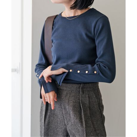 洗練された大人にふさわしい、ゴールドボタンが彩るアクセントニット。