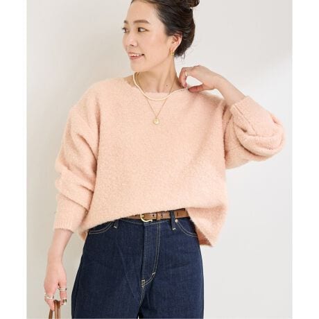 表情豊かなループ状のブークレーヤーンのふんわり軽やかなニット。