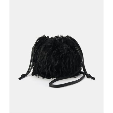 フェザーヤーンのフェイクファーを使用した巾着ショルダー。