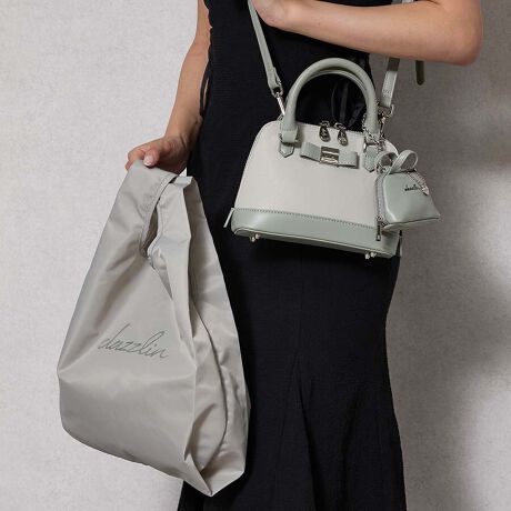 コーデに映えるリボン金具がポイントのミニハンドバッグ