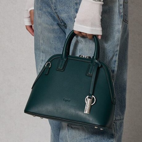 ハンドバッグサイズながらも、長財布やスマートフォンなどの主要アイテムが収納できるサイズで利便性の高いバッグ