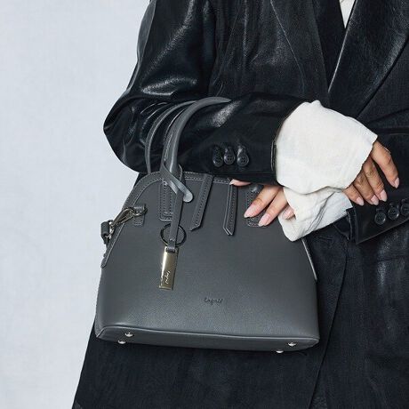ハンドバッグサイズながらも、長財布やスマートフォンなどの主要アイテムが収納できるサイズで利便性の高いバッグ
