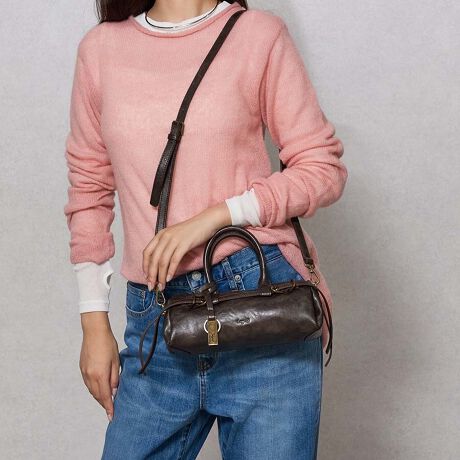 ・使い込んだ本革のような風合いのPUにアンティークなベルトのディティールが高級感たっぷり