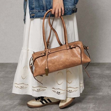アンティーク調の柔らかな質感の大容量バッグ