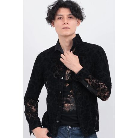 涼しく着られる長袖柄シャツとして、レース素材をベースに提案。