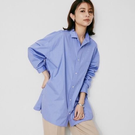 程良いオーバーサイズは、ボーイフレンドシャツのようなゆったりした雰囲気で女性らしさを演出。