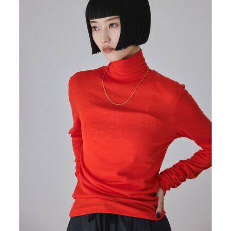 薄くさらりとしたタッチで秋の早い時期から着用できるハイネックトップス。