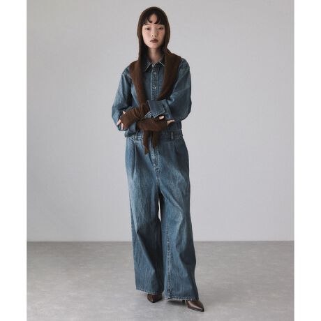 オーバーシルエットが魅力的なデニムのジャンプスーツ。