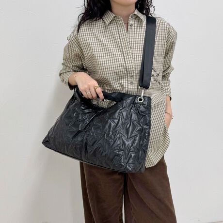 メタルな素材感がコーデのポイントになる星キルティングトート