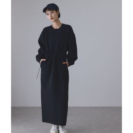 ウエストがドロスト仕様なので、すとんとしたシルエットを楽しんだり、ぎゅっと絞ってメリハリのあるバランスにしたりと、その日の気分や足元のバランスに合わせて、好みのギャザー分量に変化を加えられるデザインも魅力。