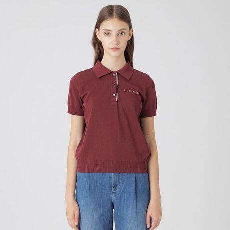[型番:55N02608__]◆胸元ロゴがポイントのニットポロ【Design】ポロシャツタイプのサマーニットプルオーバーです。胸元のロゴ刺しゅうがプレッピーなデザインポイントです。きれいな目面の素材を使用し、カジュアルになり過ぎない上品なニットポロに仕上げました。