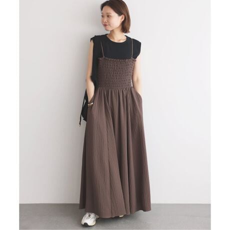 シャーリングディテールのキャミワンピースで1枚着としても着用いただけます。