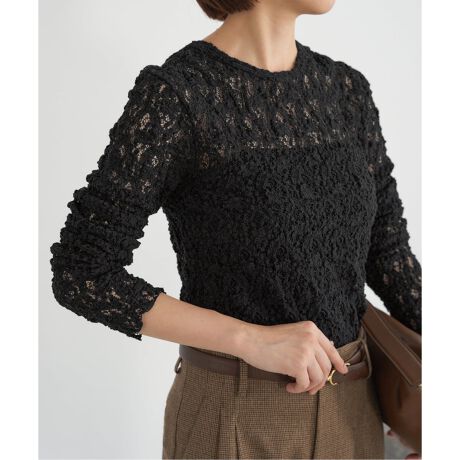 繊細で立体感のあるフラワーモチーフのストレッチレースが存在感のあるプルオーバー。