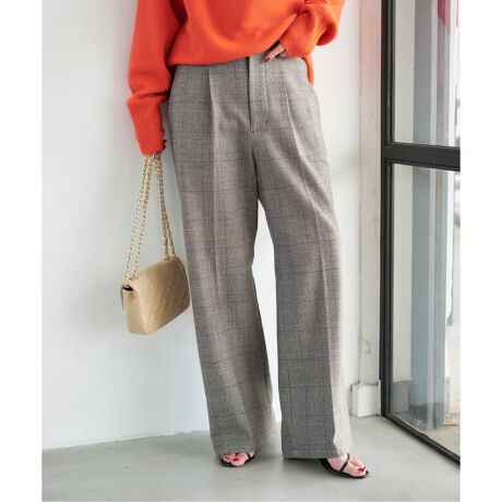 《手洗い可》グレンチェック起毛タックストレートパンツ