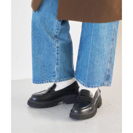 トレンドのスタイルに欠かせない厚底ローファー。