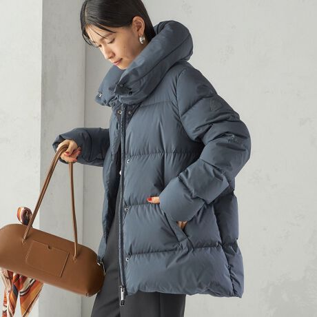 また前後差を付けた裾をラウンドさせて全体的に柔らかい印象のダウンジャケットに仕上げています。