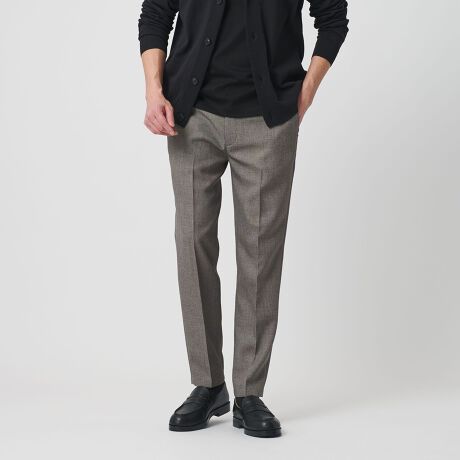 素材の陰影感がスマートでシックな印象のノータックスラックス