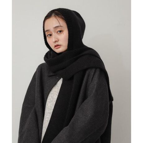 フードをかぶりストールを首に巻き付けて防寒用としてもご使用可能。