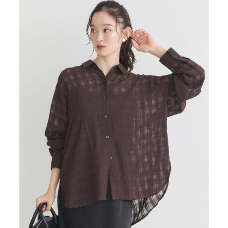 25AW レディース 長袖 シアー 透け感 秋 秋コーデ 新作 大人カジュアル チェック柄 シンプル おでかけ 通勤 オフィスカジュアル 旅行 デート 骨格 低身長 高身長 10代 20代 30代 40代 50代 トレンド おしゃれ 上品 アース 羽織