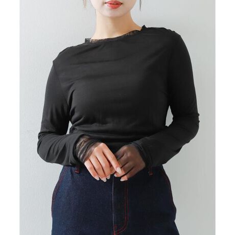 首元と袖口にチュール素材を使用し抜け感がぐっと上がるカットソー。見頃にもやや透け感があり、ニットカーディガンの中やいつものコーディネートに仕込むだけでワンラクアップのスタイリングが完成します◎