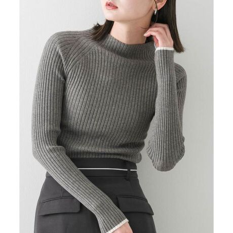 シンプルな形ながらリブに仕立てで程よく身体のラインが出て女性らしい印象を与えてくれます。配色のデザインが一枚でも様になり重宝してくれるアイテムです。