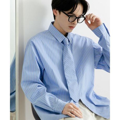 『ユニセックス』ストライプレギュラーカラーネクタイシャツ