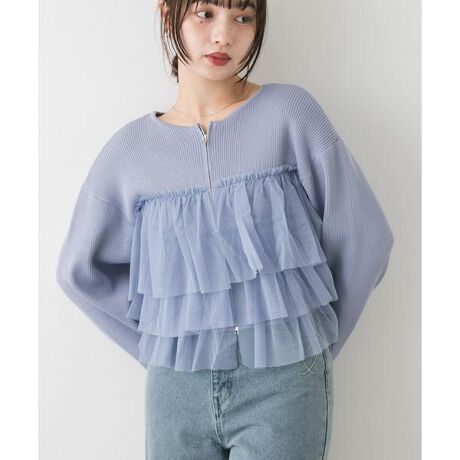 ダブルジップフリルニットカーディガン