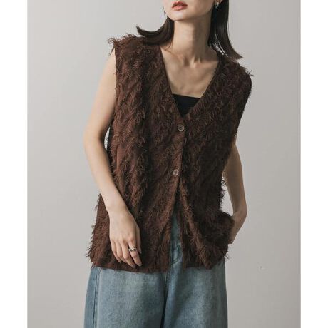 【動きと抜け感をプラス。旬顔フリンジニットジレ】