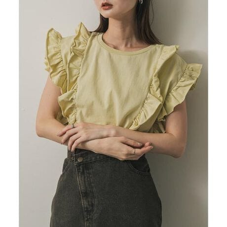 ・コンパクト丈でフリルの甘さもバランスよく着こなせる