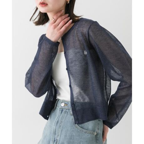 春から秋まで使えるシアーカーデ。ジャケットのインナー使いにスタイリングしても、シンプルにキャミと合わせてトップスとしても、夏の防寒や日差しよけとしても大活躍のシアーニット。