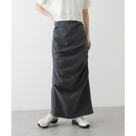 【サイズ感】足首が隠れる丈感。ウエスト部分のドレープデザインが自然にお腹をカバーし、足回りもすっきり見せてくれます。