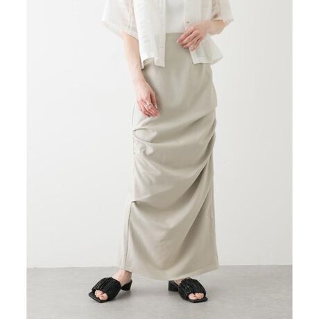 【サイズ感】足首が隠れる丈感。ウエスト部分のドレープデザインが自然にお腹をカバーし、足回りもすっきり見せてくれます。