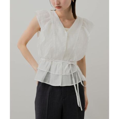 上品でフェミニンな魅力を引き出すフリルフレンチブラウス