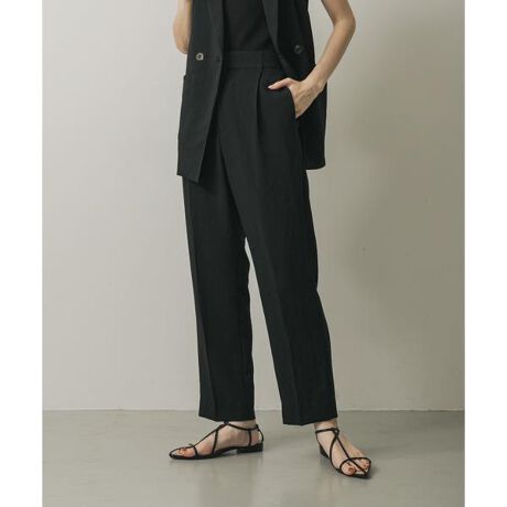 シャリみと清涼感のあるリネンライク素材を使ったテーパードパンツ。センタープレスが入っているのできちんとした印象になり、オンオフ活躍する1着。美シルエットでスタイルアップ間違い無し!