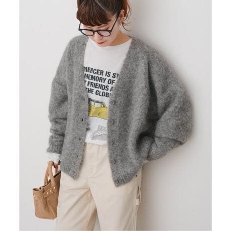 へアリーでトレンド感たっぷりの表情が魅力のニットカーディガン。