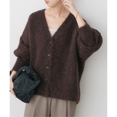 へアリーでトレンド感たっぷりの表情が魅力のニットカーディガン。