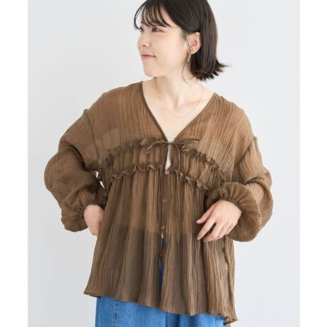 #シアー#プリーツ#フリル#Vネック#長袖#レディース#ボリュームスリーブ#羽織り#25AW#夏#秋#体型カバー