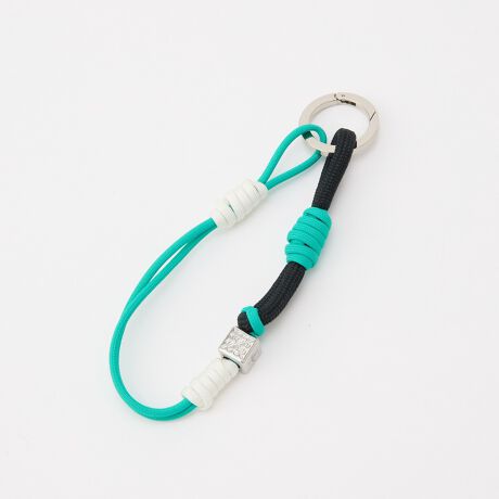 パラコードに結び目を仕立てた、モダンなノットデザインのバッグチャーム。