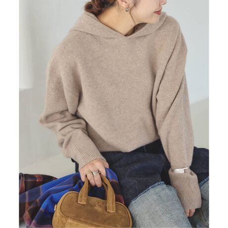 ジャーナルの定番素材、MUSICのフードプルオーバーが新登場。カシミヤ混の、もっちりとした柔らかい手触りの素材。一枚着でも、ジャケットやアウターのインでも使いやすい肉感。新鮮なフードデザインで、身巾にゆとりをもたせつつ、ジャストな着丈でバランスがとりやすいように設定しています。ジャケットなどからフードを見せて着るのも素敵です。
