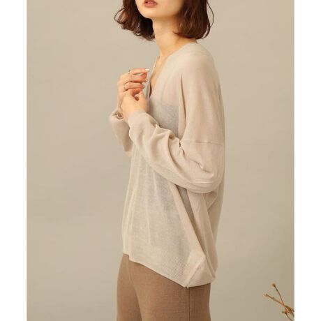 透け感がアンニュイな雰囲気のシアーセーターが登場。シーズンレスで重ね着を楽しんでいただけます。抜け感のあるVネックプルオーバーは、フェミニンなデコルテラインを演出してくれる優れもの。何にでも合わせやすくシアー感が大人の女性らしい一枚です。