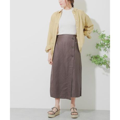 人気のリネンスカート!ラップ風のデザインが女性らしい1枚