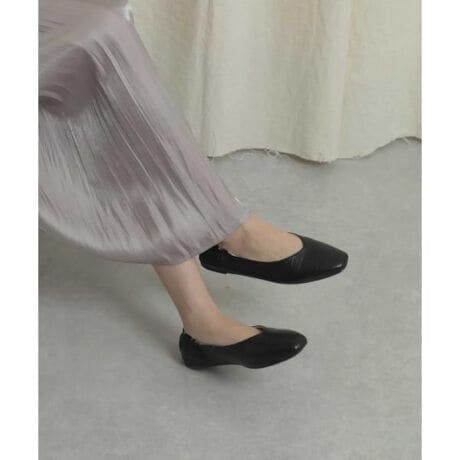 とても柔らかい素材を使用しているので、足馴染みの良さは抜群!かかと部分にはゴムが入っているので、足にぴったりフィット&脱ぎ履きも楽ちんです◎細みのシルエットですが、スクエアトウになっている事でつま先の窮屈さもありません。