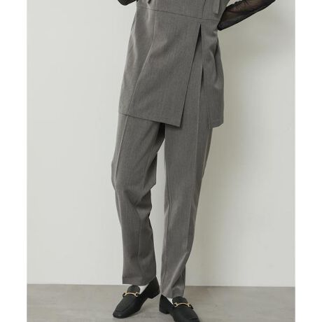 すっきりとした丈感のテーパードシルエットなのでキレイめブラウス合わせでお仕事にも向いています。同素材のジャケット合わせでよりまとまり感のあるスタイリングに仕上がります。