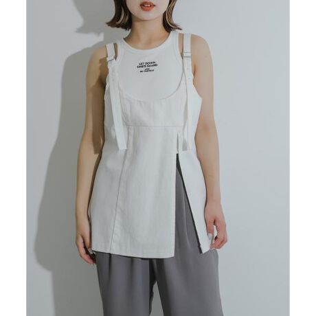 ハイネックのインナーを合わせるスタイリングがおすすめです。同素材でパンツもご用意している為セットアップの様に着用いただくのもおすすめです。
