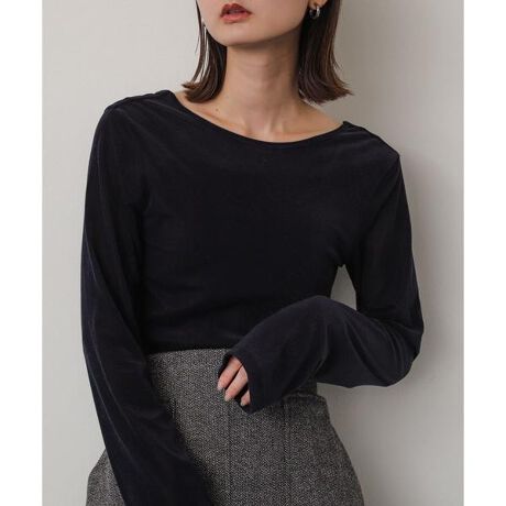 シンプルなデザインなTシャツですが、秋らしさを感じさせるシアーベロアの素材でトレンド感ある1枚。